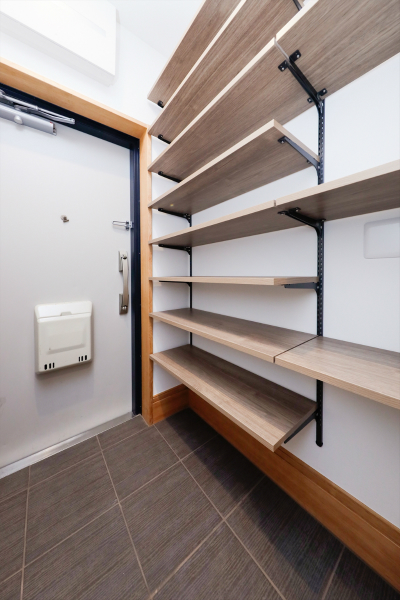 幅がとれない玄関でも、どこに何があるか一目で見渡せて、出し入れしやすくなっています。