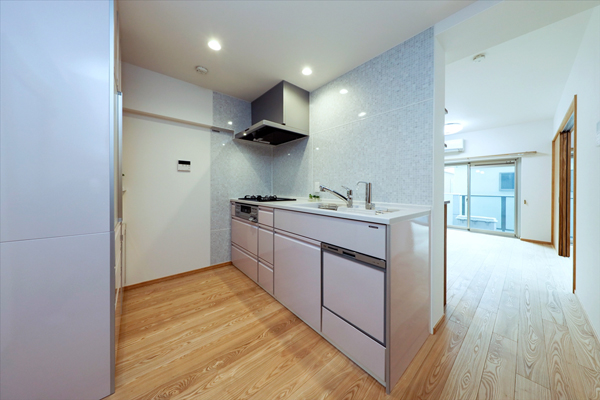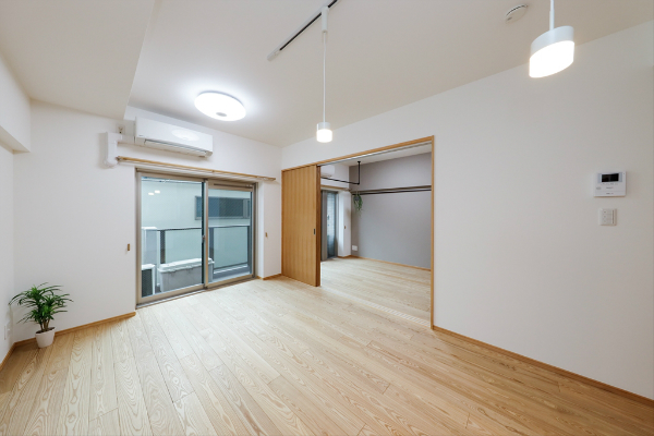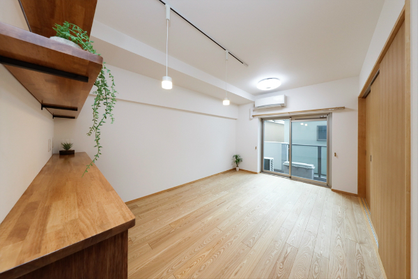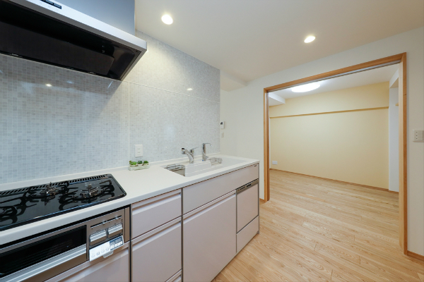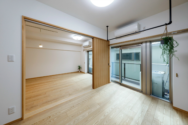 間取りはリフォーム前と同じ3LDKのままですが、間仕切りを少し変え、キッチンの裏にあるバルコニー側の個室をリビングとして使えるようにしました。