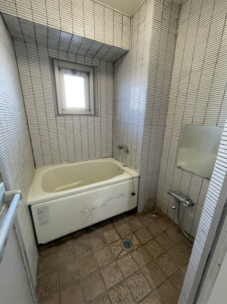 ▲リフォーム前の浴室。タイルの張り替えで大分雰囲気が変わりますね。
