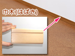 床と壁の継ぎ目で、壁の最下部に取り付ける細長い横板のことを『巾木』と呼びます。