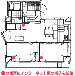 今はインターネットを使用する時代。30年前のマンションですから端子を新設する必要がありました。