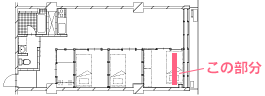 奥のお部屋になると、エアコンの設置は建物の都合上、難しかったのです。