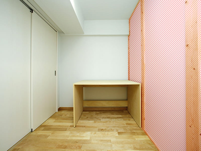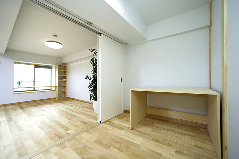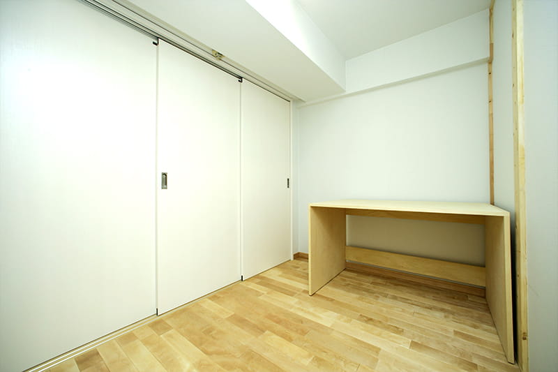 寝室側の壁は、簡単な工事で取り外せる壁にしています。
