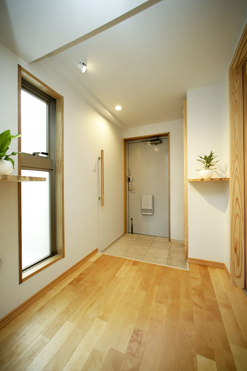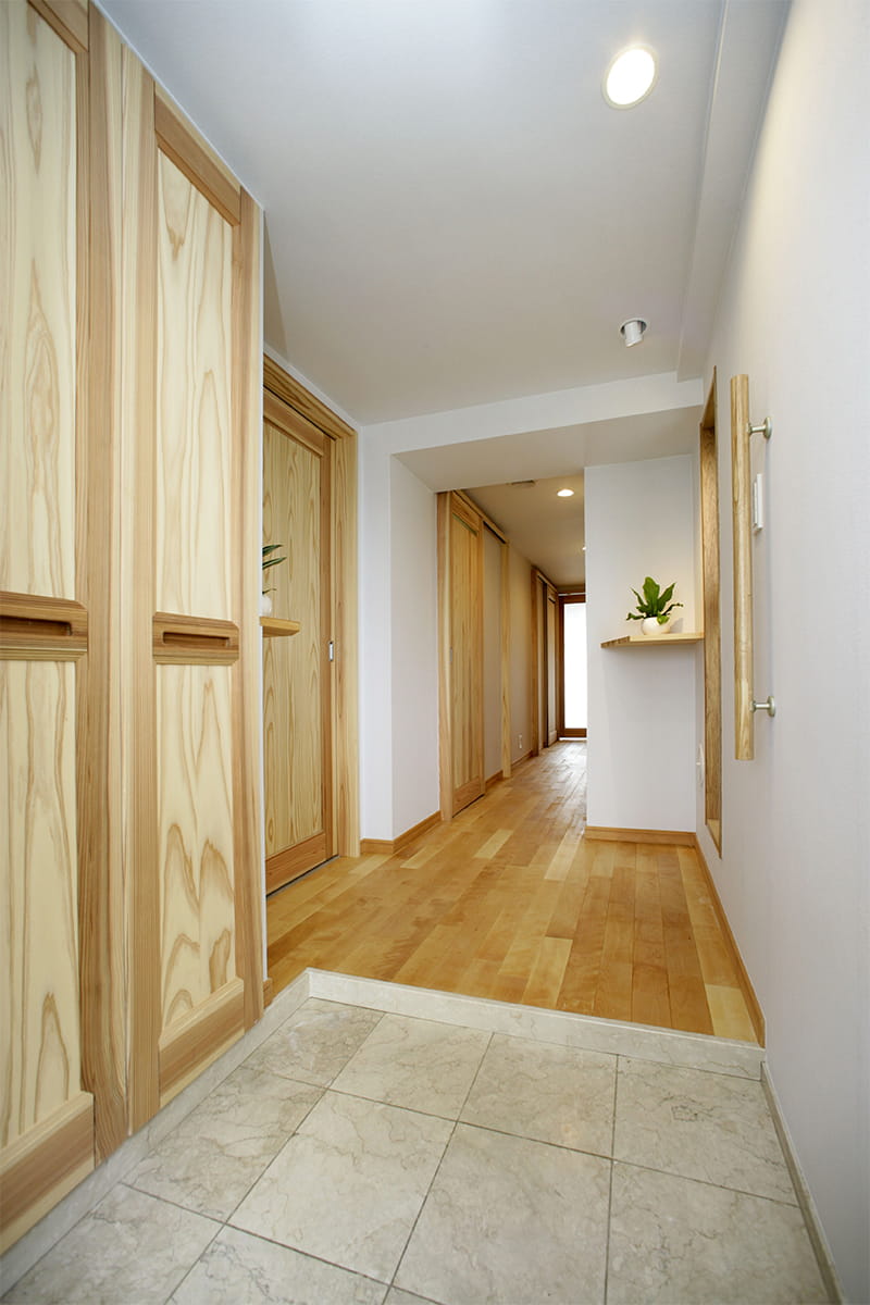 玄関を開けた瞬間から木のぬくもりが感じられ、ホッとできる空間です。