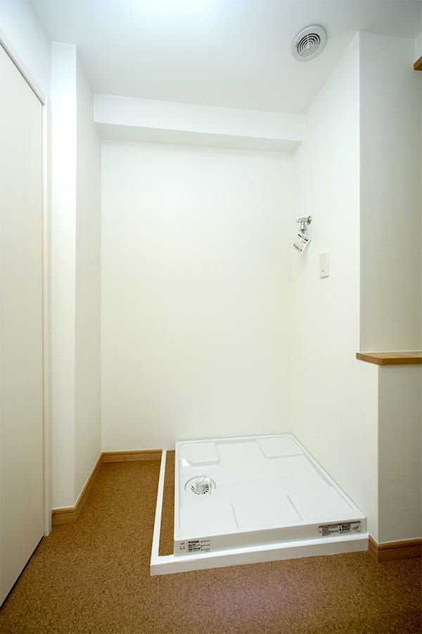 洗面脱衣室に隣接した洗濯機置き場。キッチン・バックヤードともつながっているので、家事がしやすいですね。