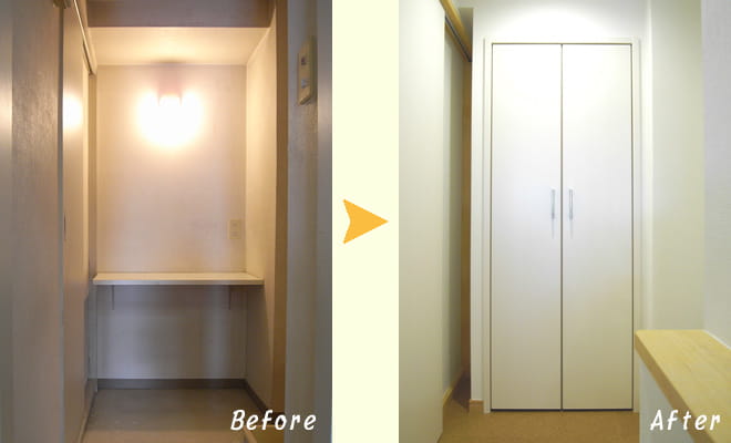洗濯機置き場脇にあったカウンターは、洗面室収納へと造り替えました。