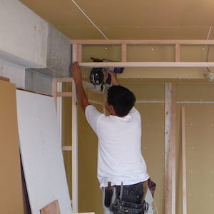 新しい壁の下地を作っています。こちらはリビングとウォークインクローゼットを仕切る引き戸の部分です。