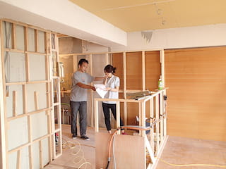 工事が始まってからも週に1度現場にてお打合せを行い、壁紙の色や棚の高さなど、細かい部分を確認していただきました。