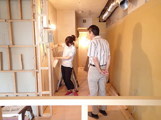 コーディネーターの千葉も現場に出向き、職人さんたちと細かい打合せを行います。