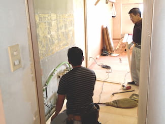 給排水はどこに繋がっているかなど、間取り図では分からないところも細かくチェックします。