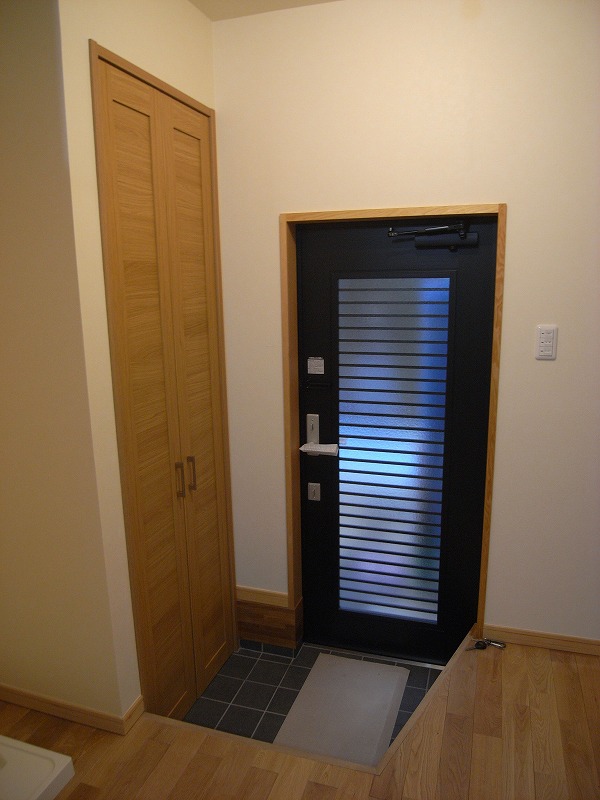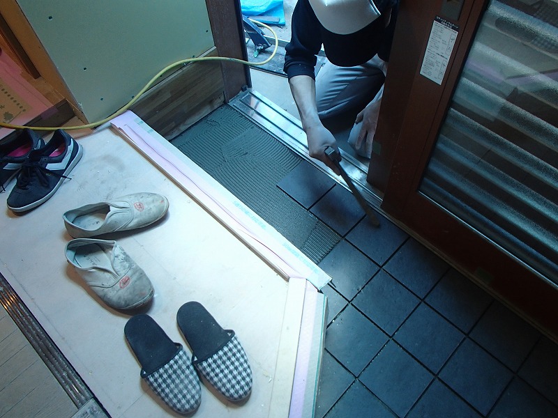 玄関のタイル工事も行いました。タイルを並べていきます。