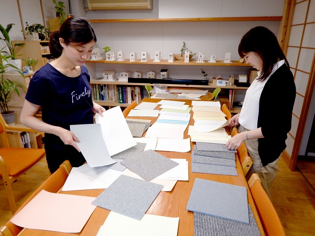 お客様に提案する前に社内でコーディネートを検討中。