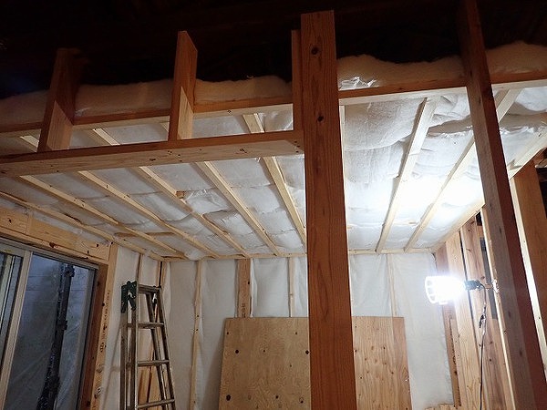 まず、外壁や天井の断熱工事の様子です。