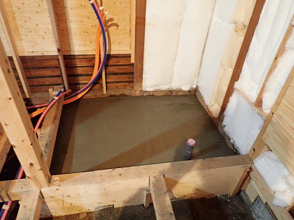 ユニットバスを置く場所の周辺の壁には、断熱材を入れていきます。