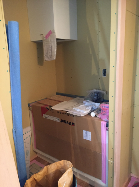 ▲こちらは1階のお部屋。足元が空いた吊り押し入れを製作しています。