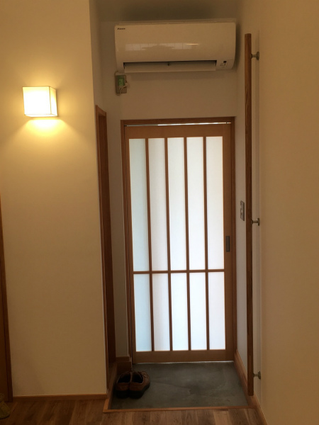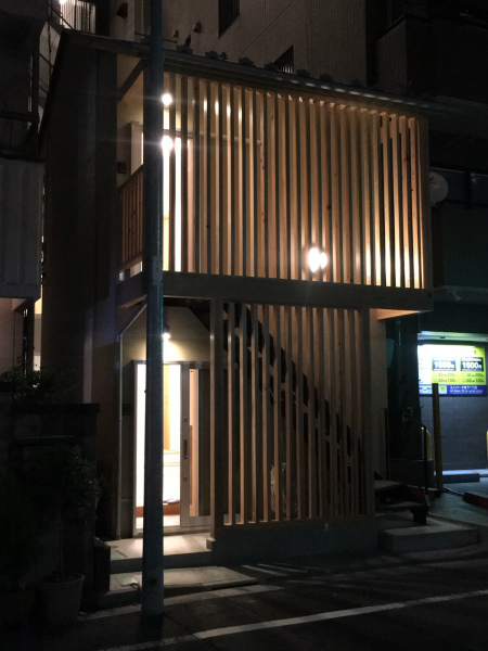 江東区新築 完成間近です!江東区新築・2020年1月着工2020.06.052021.10.06エコリフォームの西澤です。江東区の木造2階建て新築現場はもう完成間近。外構はほぼ終了し、建具や畳なども入りました。▲外構のコンクリートを整えました。▲前面に木の格子が付いて和の装いに。▲夜の雰囲気もいい感じです▲玄関扉が透明ガラス…と思っていたら、内側に障子が付きました。▲内部から見るとこんな感じです。▲和室には畳が設置されました。残すは細かい仕上げのみ、というところまできましたが、気になる完成の様子は後日ご紹介します。それでは、また。リフォーム事例で詳しくご紹介しています。国産材の「木の家」で等身大の和の暮らし