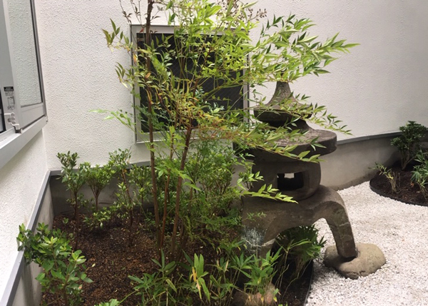 江東区の新築物件に造園の職人さんが入って素敵な坪庭ができました。