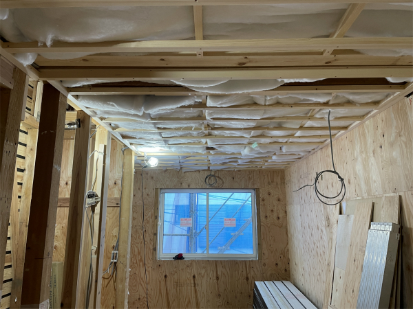 1階は防蟻処理が終わった後、床下の断熱材を施工しました。