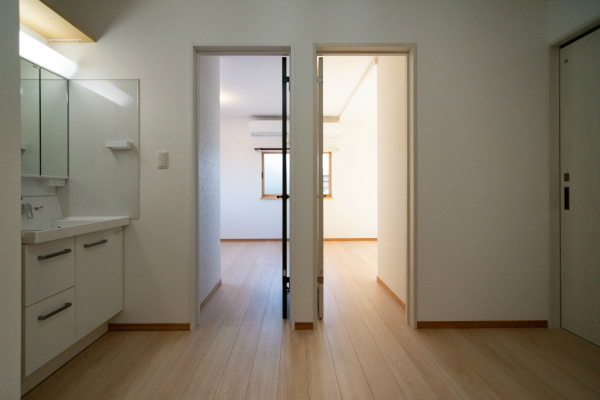 1階は親世帯の生活スペースと、二世帯共同で使用するお風呂があります。