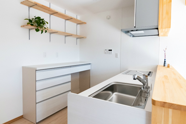 家族が集うLDKは対面キッチンに。日当たりが良く明るいLDKです。