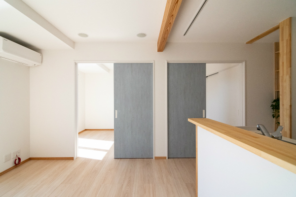 2階は白を基調にしたインテリアにしていますが、個室は建具や壁紙を各個人の好みに合わせてそれぞれ選んでいただきました。