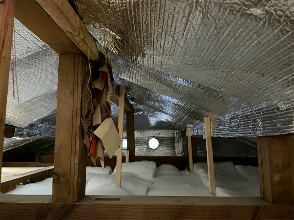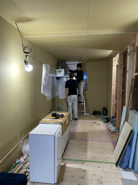 3階では2階と同様に壁と天井に断熱材を入れ、下地を作りました。
