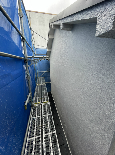 外装は防水処理や補修を終え、仕上げの塗装を行いました。