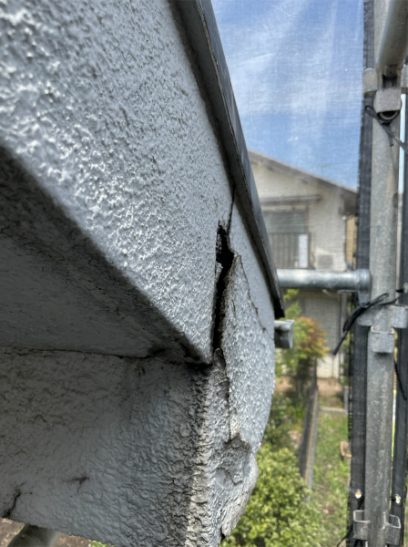 ▲外壁のクラックもひとつひとつ補修します。