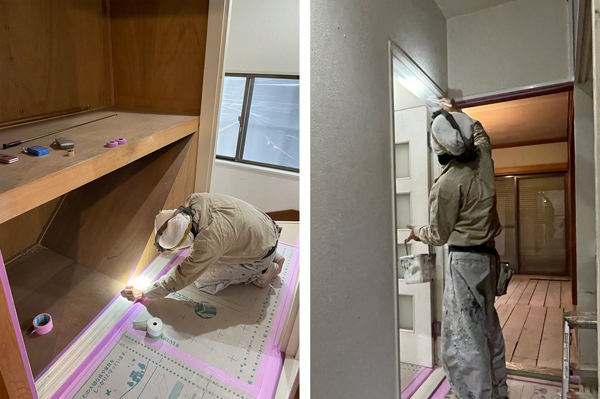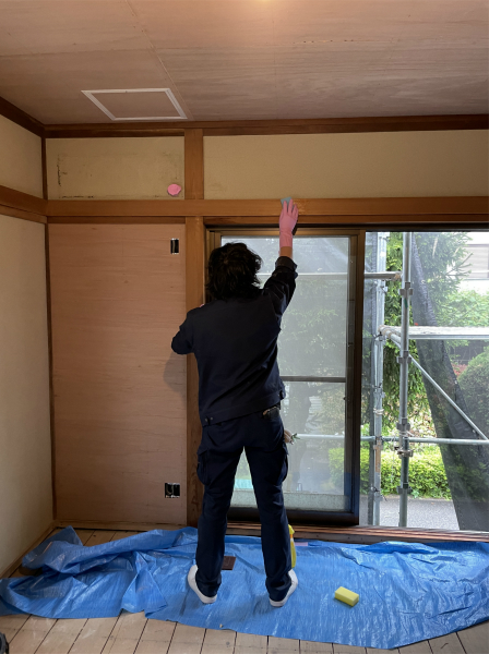 和室では木部の汚れを洗う作業を行いました。長年のカビや黒ずみを落とし、新しい壁紙や畳を入れればピカピカの和室に生まれ変わります。