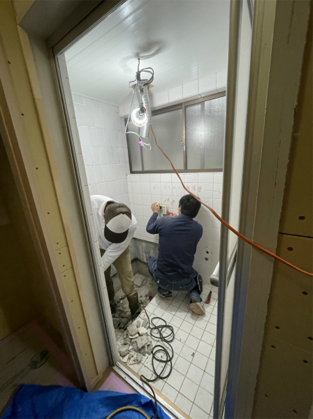 ▲既存の浴槽や給湯器のリモコンなどを取り外して下地を整えます。