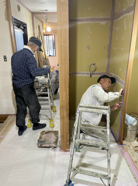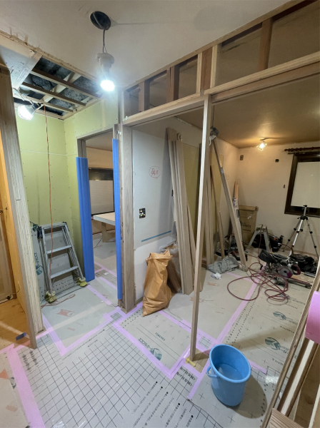 以前は廊下への出入口が玄関側の部屋にしかありませんでしたが、今回の工事で2部屋とも廊下に面する出入口を作り、それぞれ独立して使えるようにします。