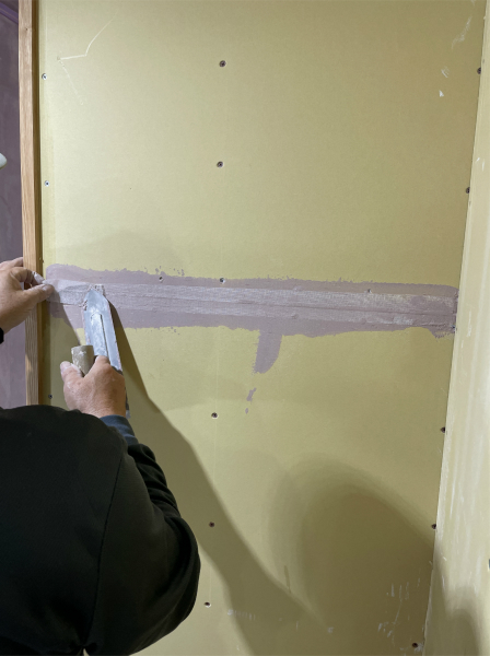 K様邸の居室の壁は塗り壁で仕上げます。壁の下地ができたところで左官職人さんが入りました。