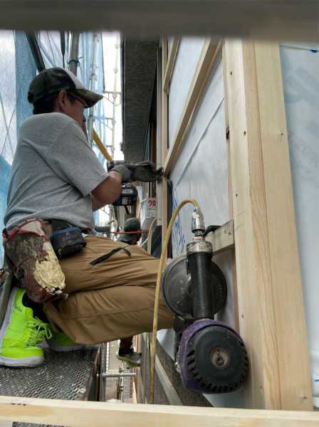 外壁は古い外壁の上から重ね張りするための下地を作ります。