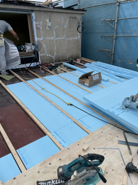 先週から関東も梅雨入りとなりました。文京区の戸建リフォーム現場では、長雨となる前に外壁と屋根の下地工事を行いました。