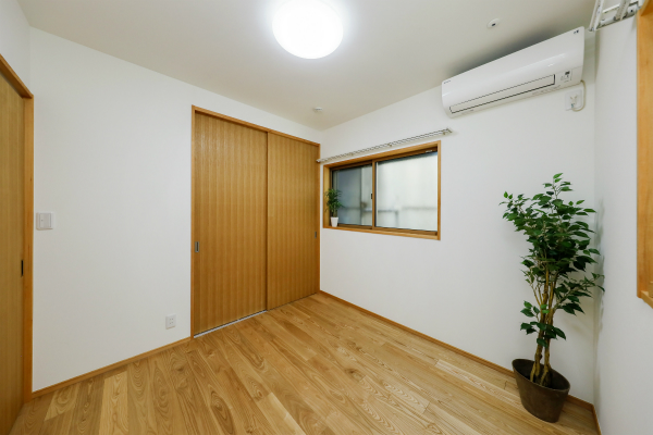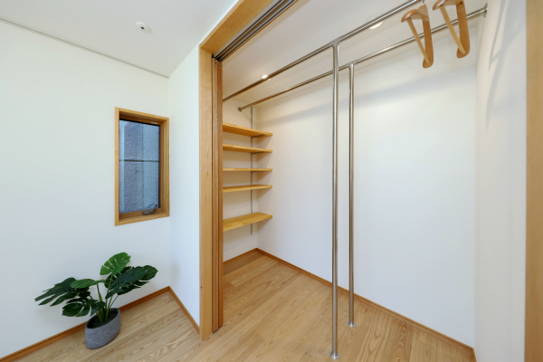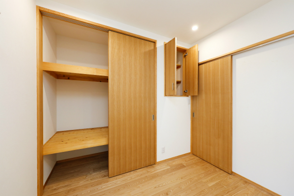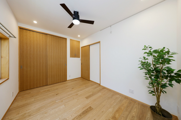 2階はもともとは扉で仕切るだけで二間続きの洋室と和室になっていましたが、お部屋の間を壁で区切って、大きなクローゼット収納を作りました。