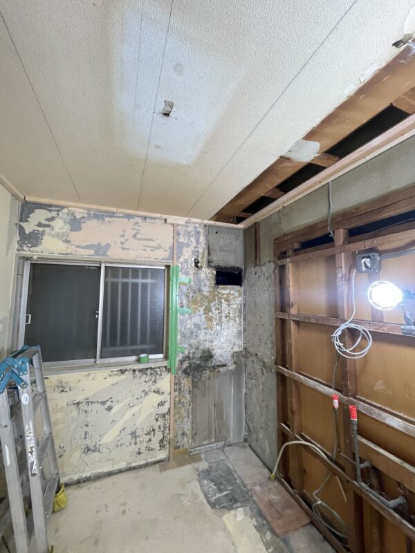 次回は新規キッチン取付の為の、給排水工事の様子や、天井の焼杉張りの様子をご紹介します。