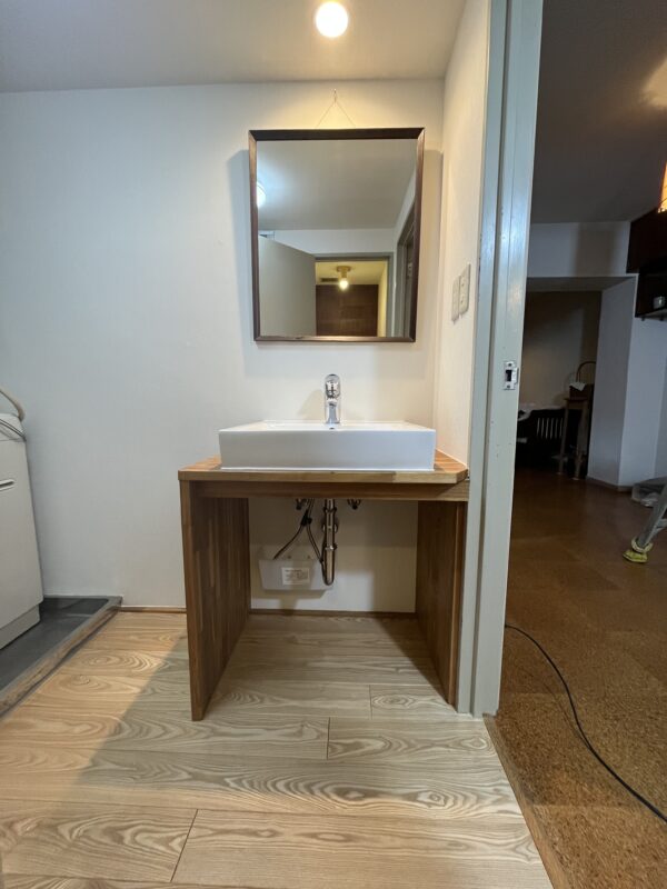 シンプルでカッコいいオリジナルの洗面台が完成しました。
