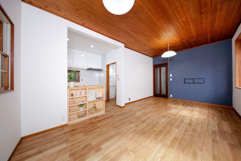 6年前は、キッチンと浴室、トイレなど水回りを中心に、リビングはH様のご希望のナチュラルでカッコいい雰囲気の内装に変更いたしました。アクセントクロスを使い、雰囲気のあるリビングになっています。