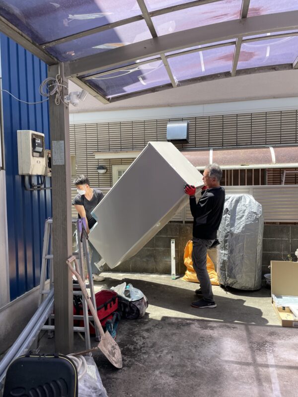 通常の電気温水器もそうですが、お湯を貯めておく貯湯タンクがある為、機器は大型となりかなり重いので既存の給湯器の処分や新しい機器を搬入する際は大変な作業となります。