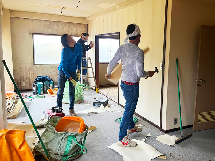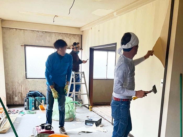 間取りの変更はいたしませんので、間仕切りの壁を残しながら必要な部分を解体していきます。