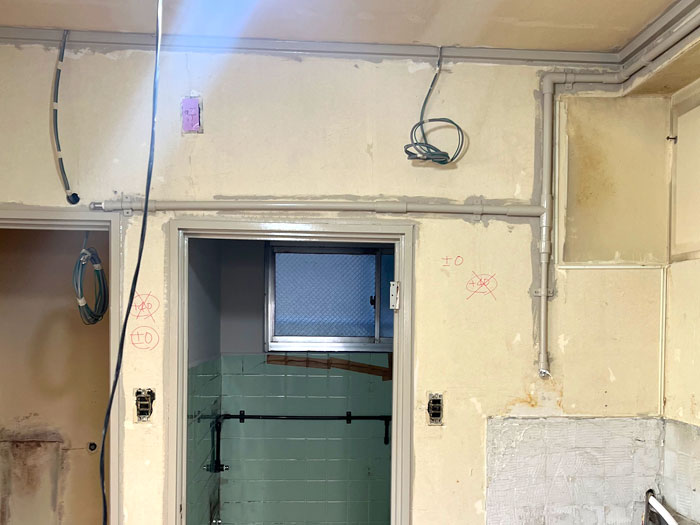 配線や配管も露出になっているものが多いので、これを機に見栄え良く納めていきます。