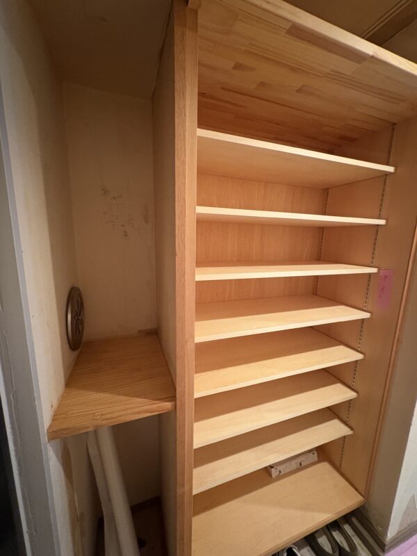 ご希望のサイズで造作し、正面には可動式の棚を設置しました。