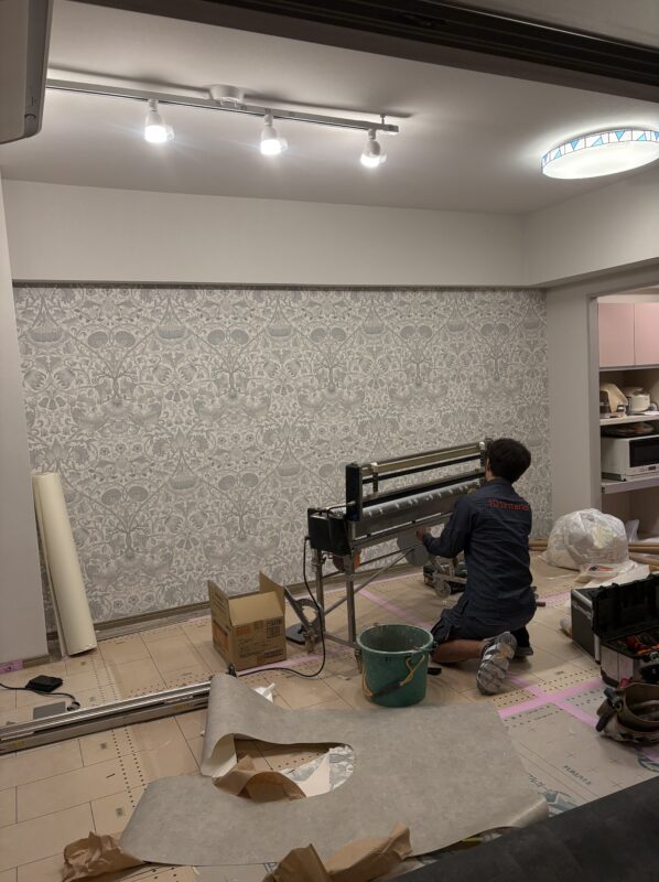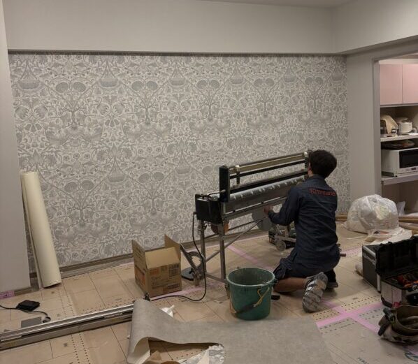 壁の不陸を調整し平にならしていく作業をしています。これがクロスの仕上がりにとても影響するんです。