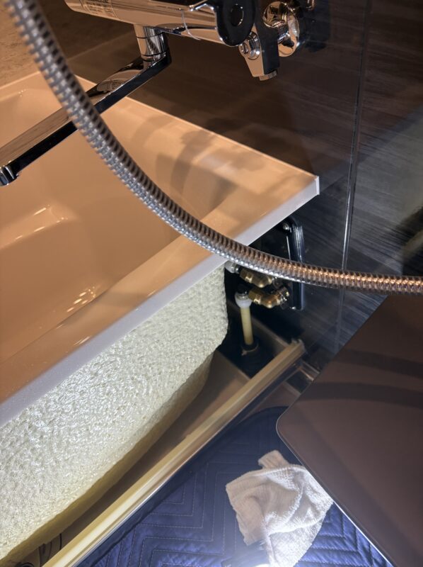 浴室のエプロンと呼ばれる部分を取り外し、給水給湯をつなぎました。