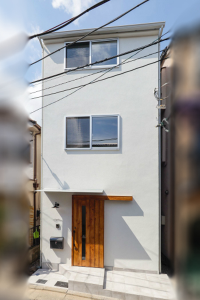 まずは外観。以前はタイル張りだった外壁に白のジョリパットを塗り、モダンな外観になりました。