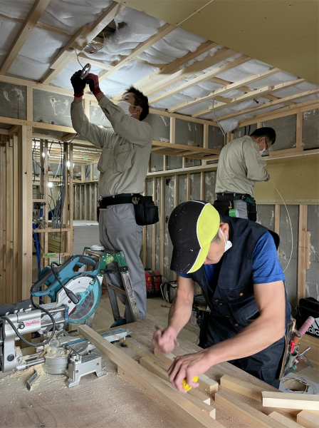 下地工事が終わったら、設備・建具の取付や、床・クロスなどの仕上げ工事に入ります。
