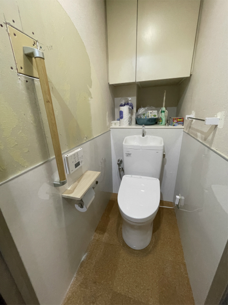 トイレは機器を交換して壁・床材を張り替え、手すりを新たに取り付けました。