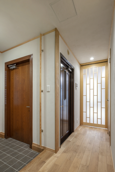 K様はご親戚同士で所有するビルの3階にお住まいでしたが、足腰への負担を考えて2階にお引越しする計画を立てられました。2階フロアは2DKと1DKの2世帯に分けていたため、間取りを変更して大きな2LDKのお部屋にリフォームします。