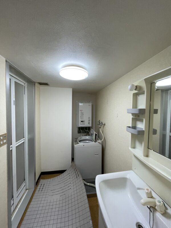 新宿区K様邸のキッチン工事が完了したので、次に洗面台を造作した様子をご紹介いたします。