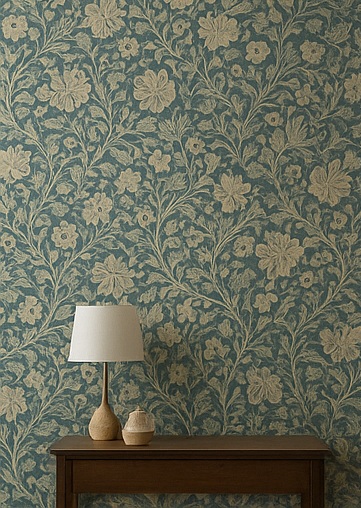 落ち着いた色合いの植物柄を取り入れると、
